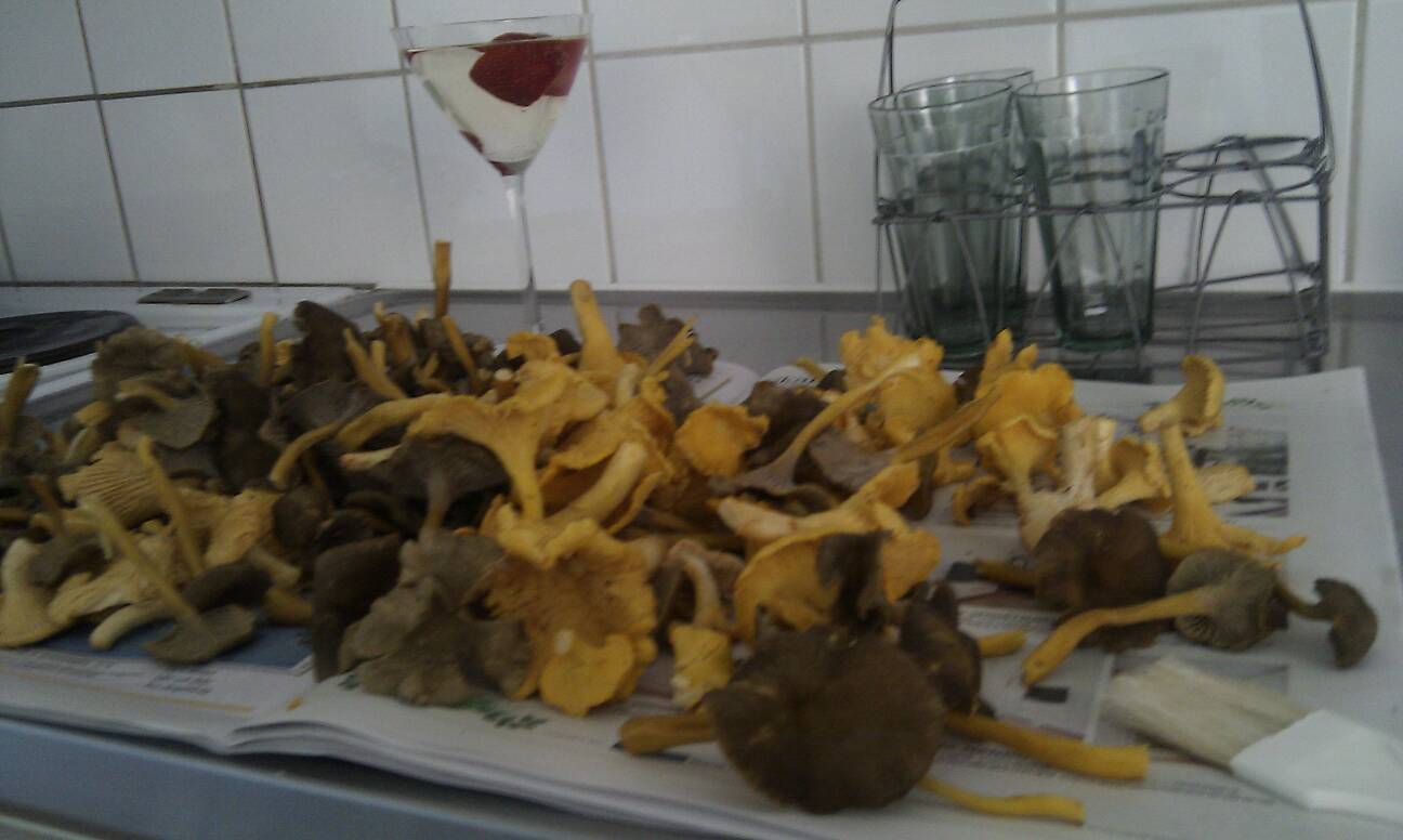 En av mina grannar som också var med på konferensen, frågade om jag ville ha kantareller. Om jag ville! Så nu ska de rensas, kanske det blir en kantarellsmörgås ikväll.